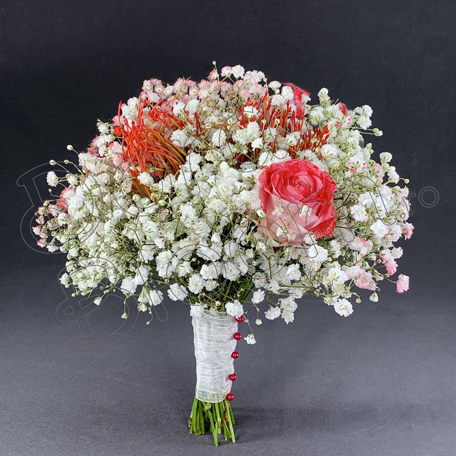 Un buchet deosebit, elegant, special creat pentru o mireasa delicata! Buchetul realizat doar cu gypsophila poate fi purtat cu mare succes si pentru cununia civila. Pretul poate sa difere fata de cel afisat functie de sezon.