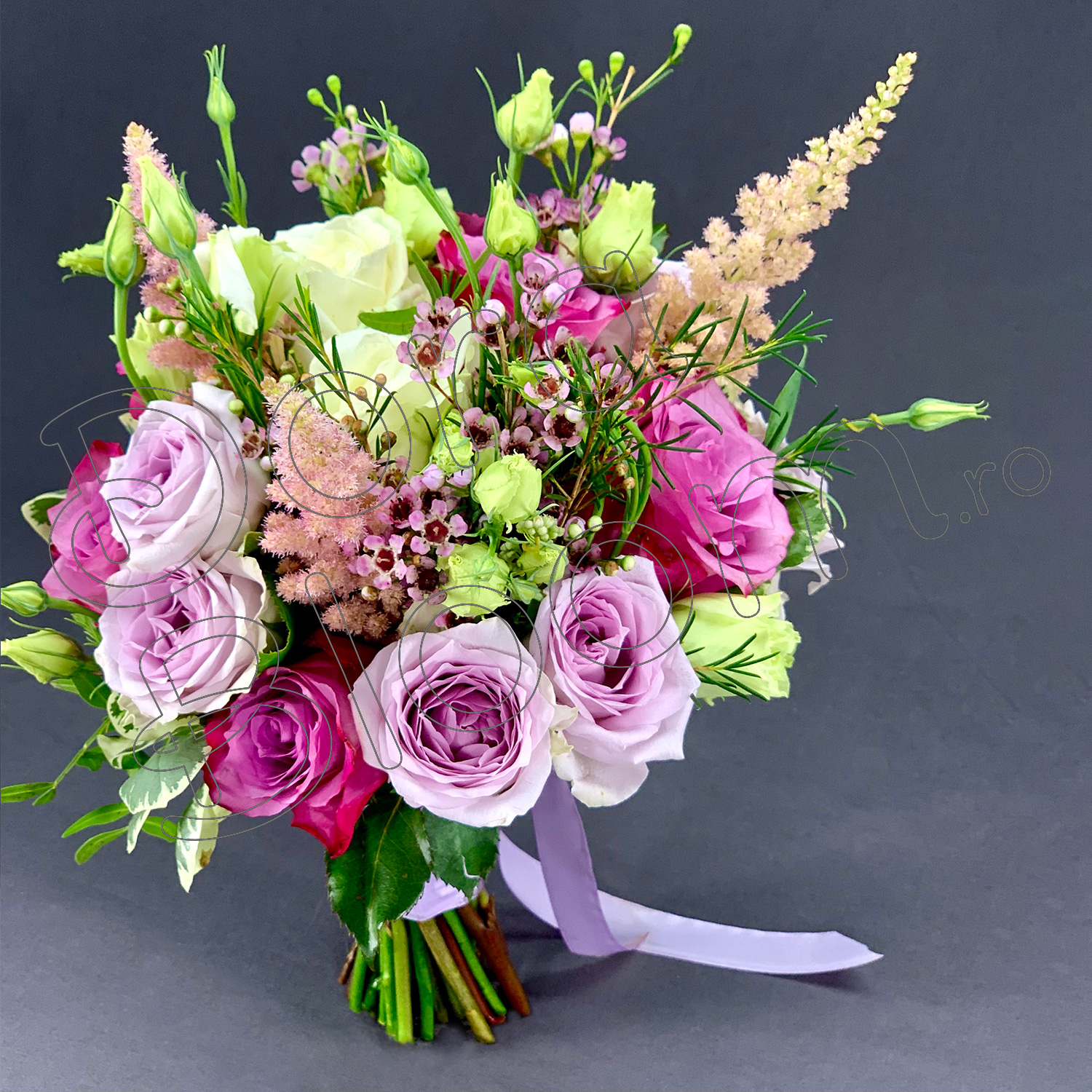 Buchet pentru nasa creat cu flori proaspete, in nuante pastel.