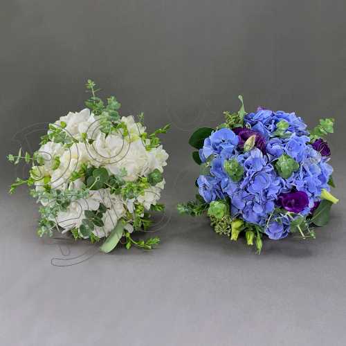 Buchetul miresei creat cu flori proaspete: frezii si hortensii!