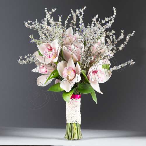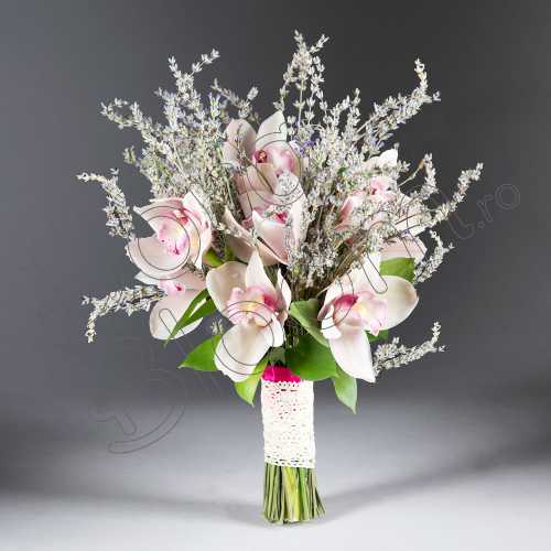 Pe cat de simplu pe atat de rafinat, buchetul cu doar lavanda si orhidee-cymbidium.