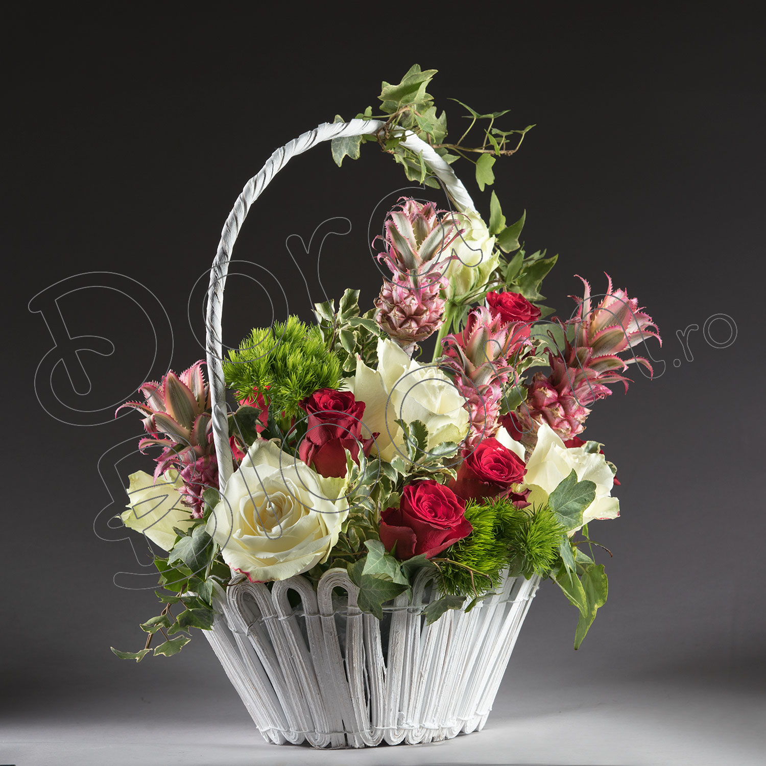 Cum sa exprimi discret aceasta dorinta, decat oferindu-i un cos cu flori? Un aranjament floral rafinat, exotic, vesel, un cadou adresat persoanelor optimiste si puternice, iubitoare VIVA MAGENTA, culoarea anului 2023.