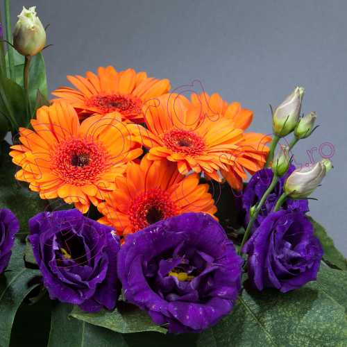 Aranjament floral cu eustoma si gerbera - Elegance