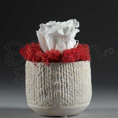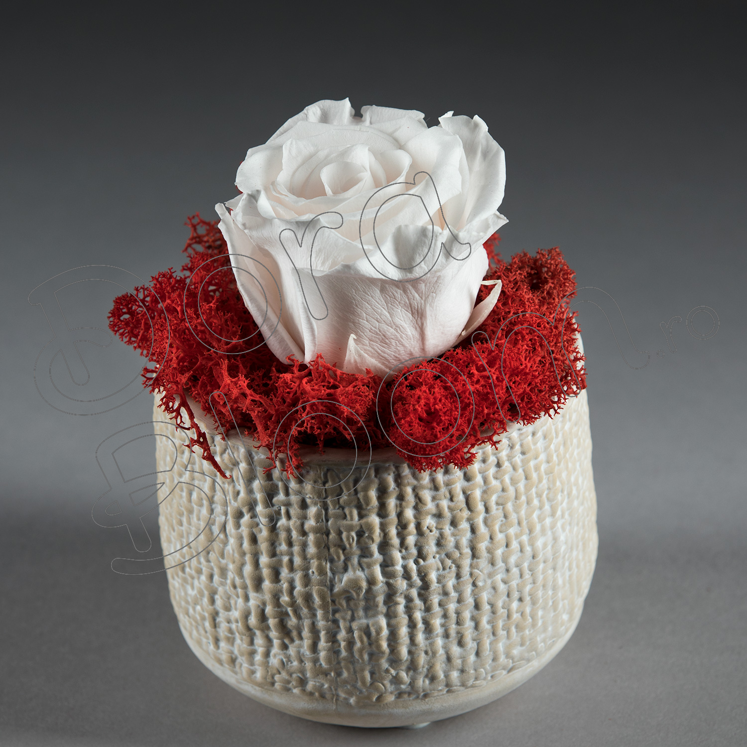 Pentru orice eveniment sau ocazie, alege un aranjament floral cu trandafiri criogenati si accesorii conservate specifice acestei categorii de plante, marca Dora Bloom. La cerere, aranjamentul se poate crea cu trandafiri criogenati de alte culori, cu alte accesorii, cat si in alt vas. Sau alege chiar un aranjament floral cu trandafiri criogenati intr-o cutie de bijuterii!