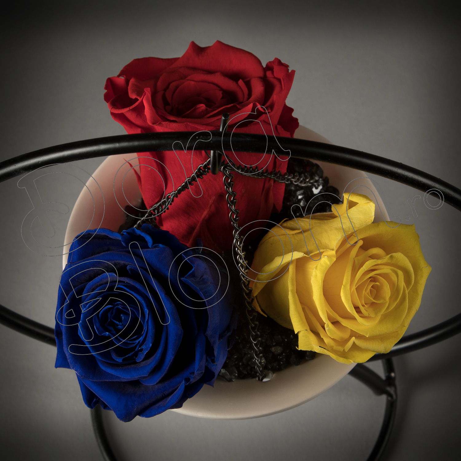 Aranjament floral cu trandafiri criogenati ROMANIA
