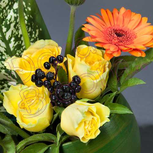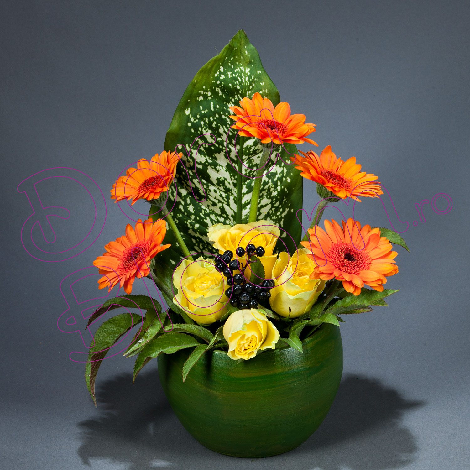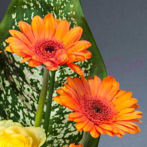 Aranjament floral cu trandafiri si mini-gerbera Natural Wonders