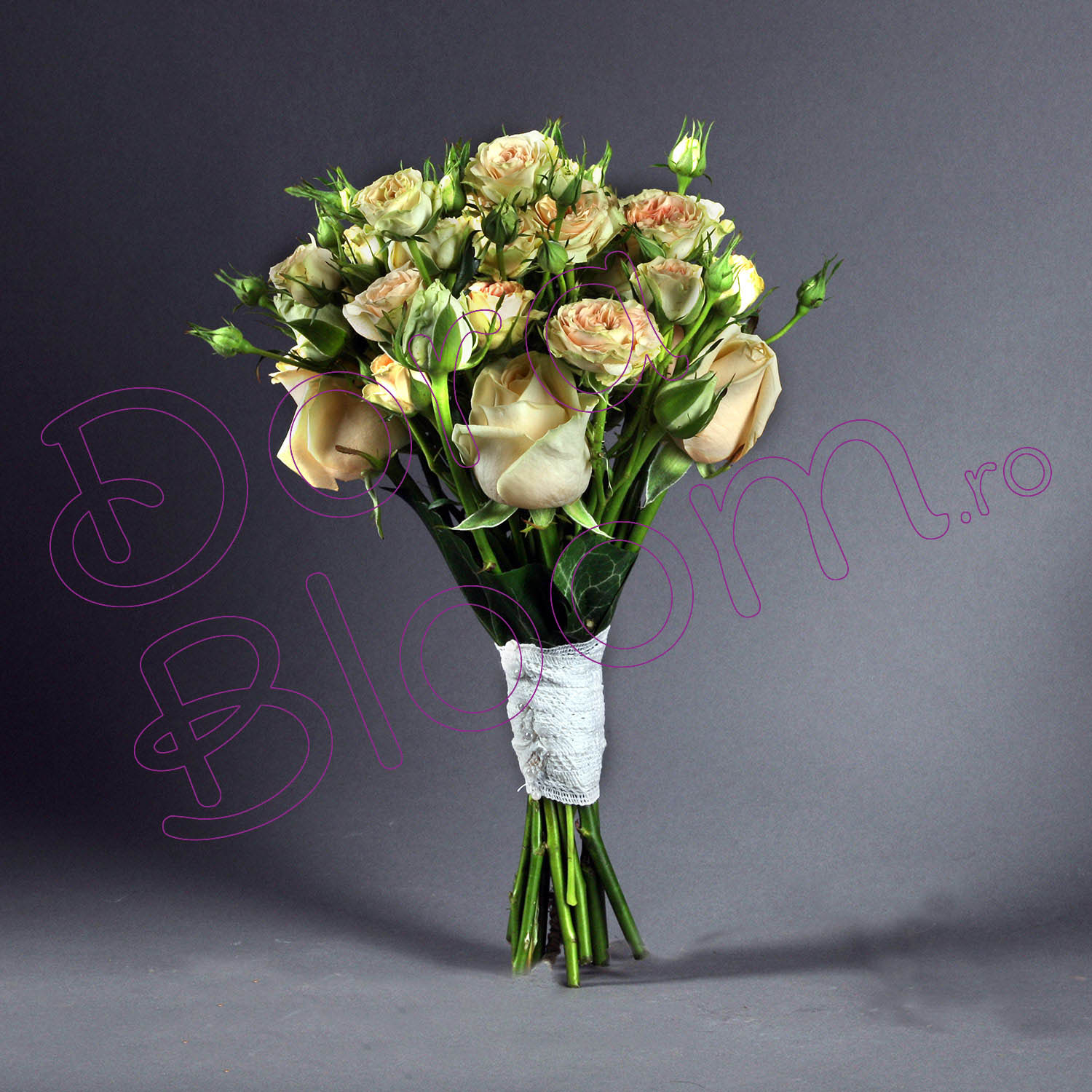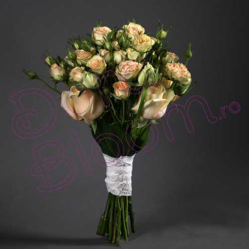 Buchet cu bujori si trandafiri criogenati pentru mireasa