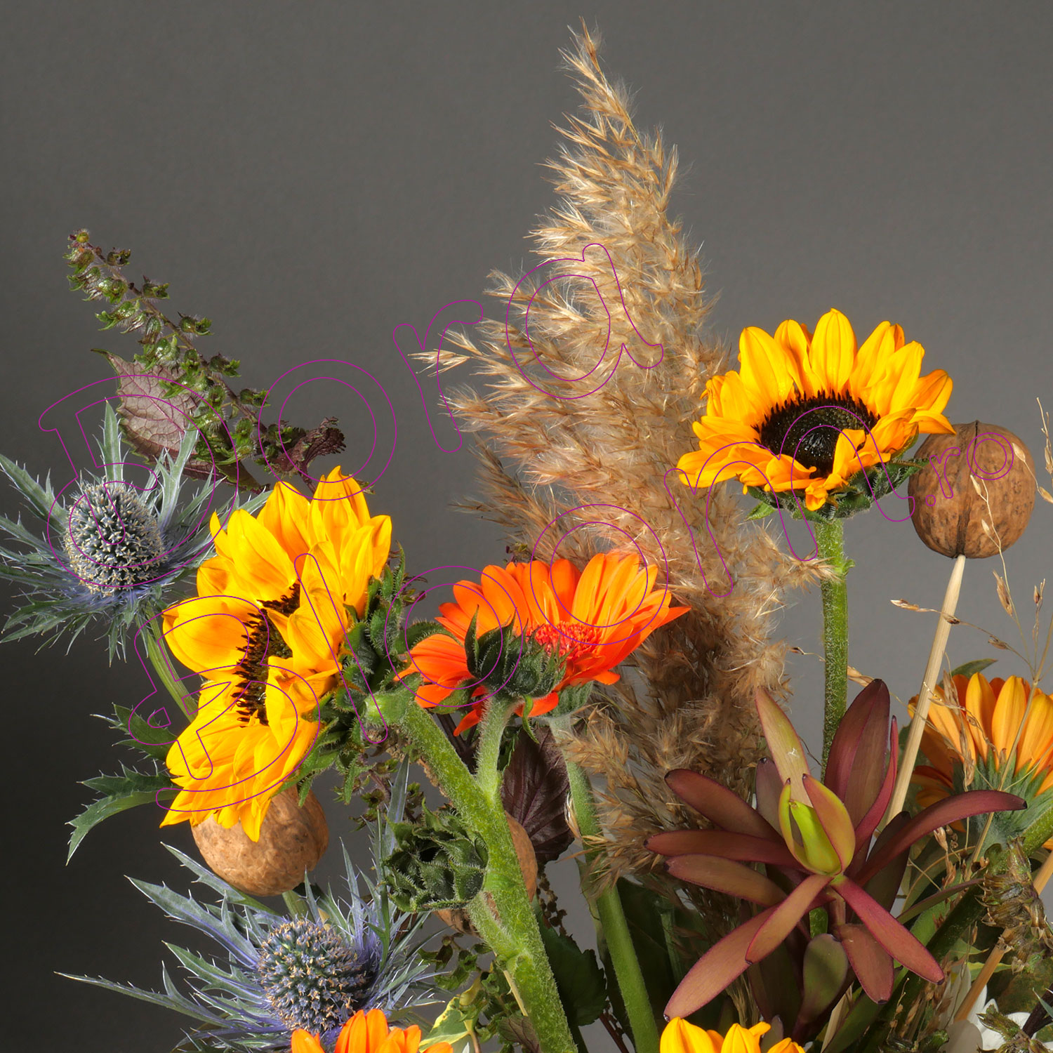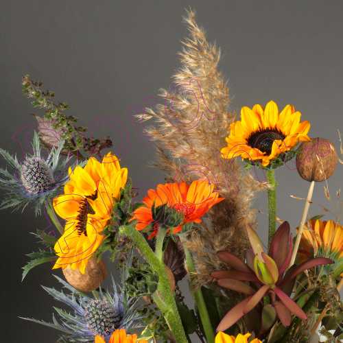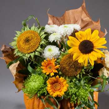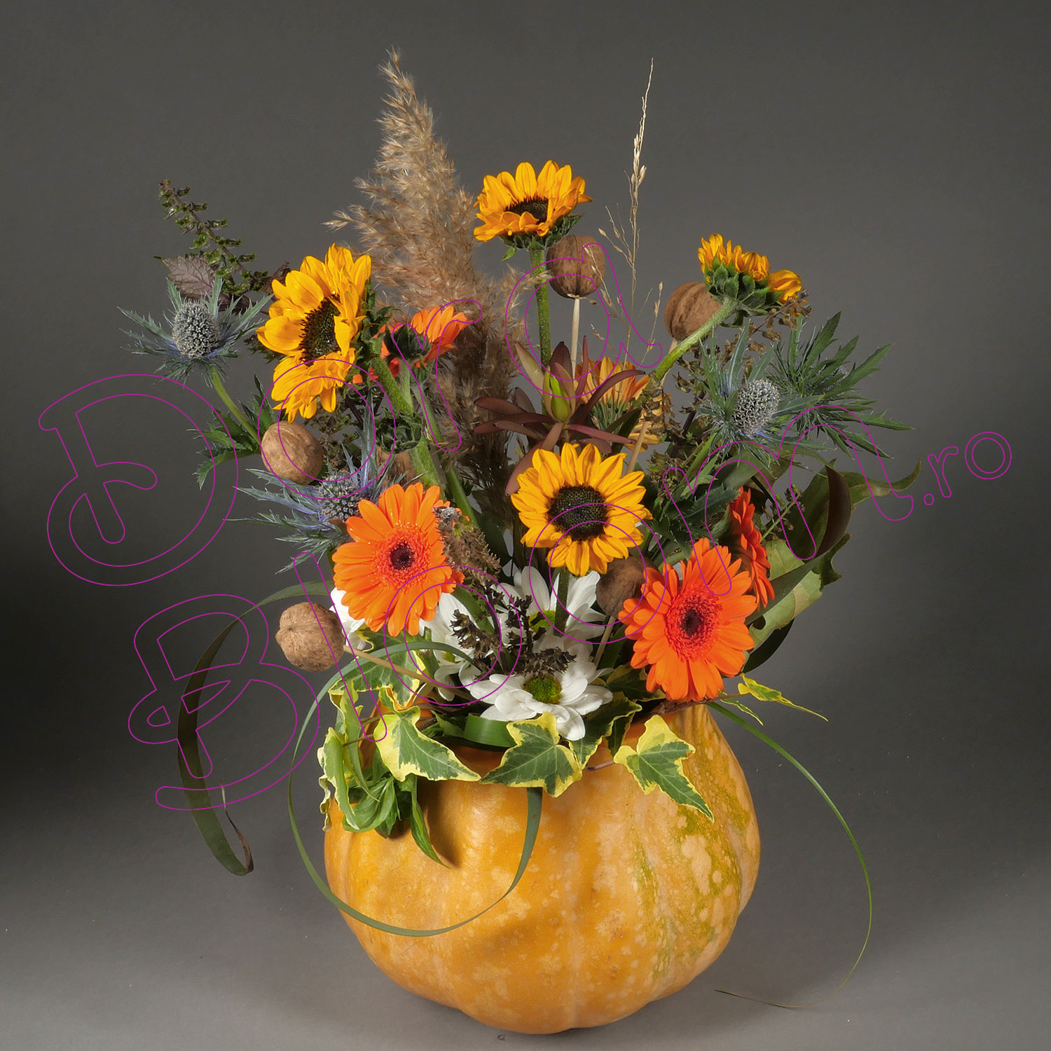 Un aranjament bogat atat in culoare cat si in flori, ce aduce veselie si naturalete pentru aceasta zi.