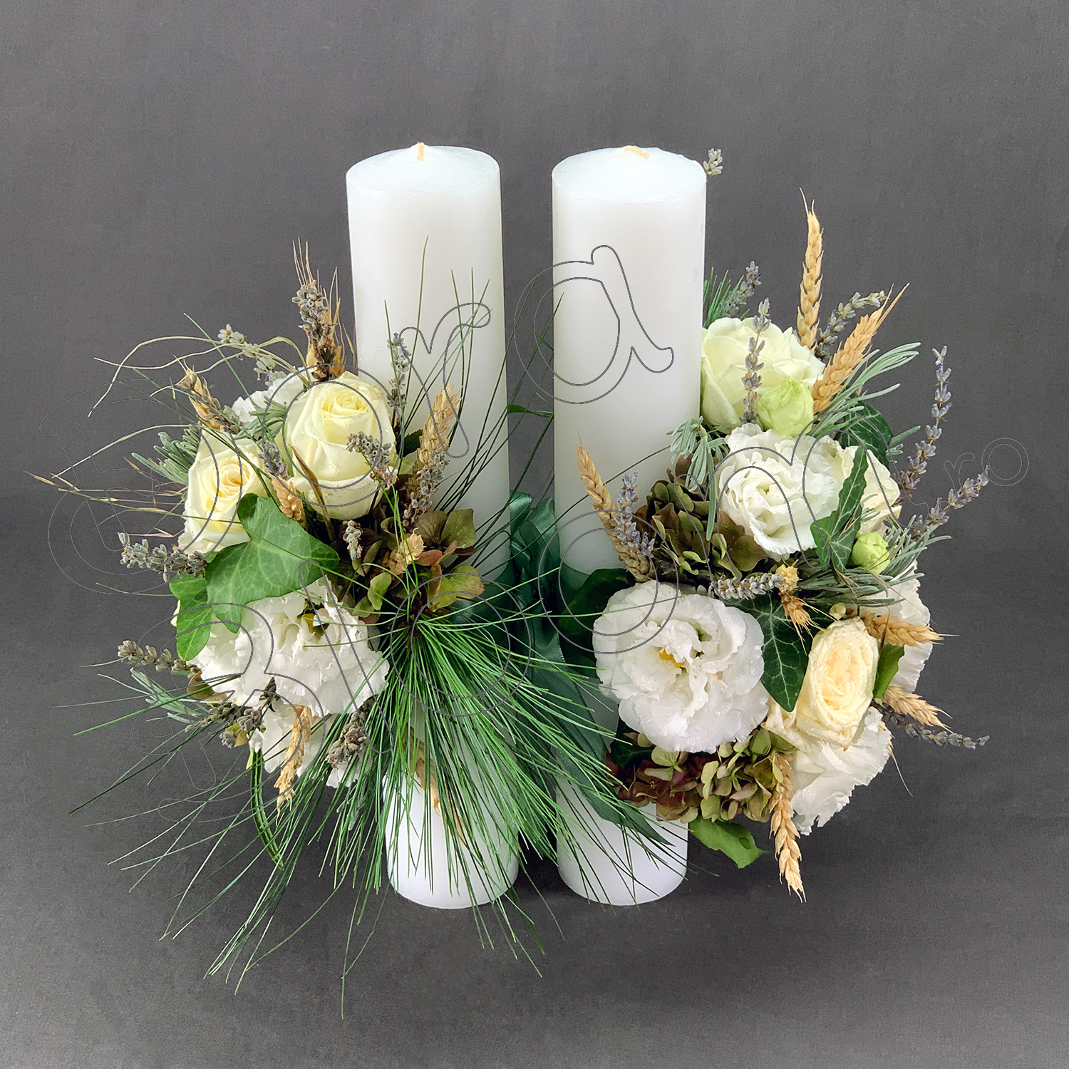 In functie de tema evenimentului, se poate alege forma aranjamentului, cat si florile utilizate. Inaltime lumanari 40cm