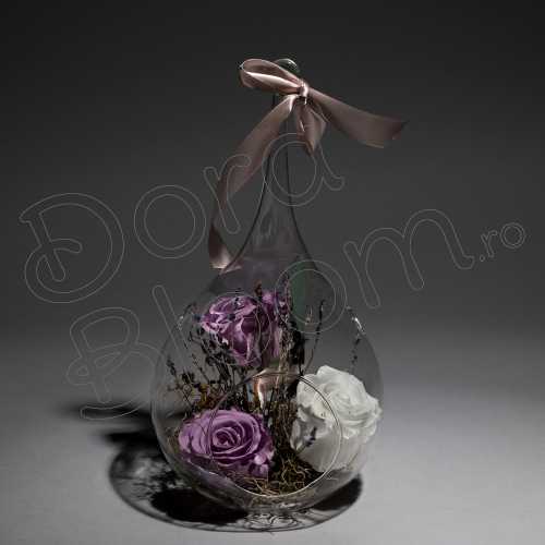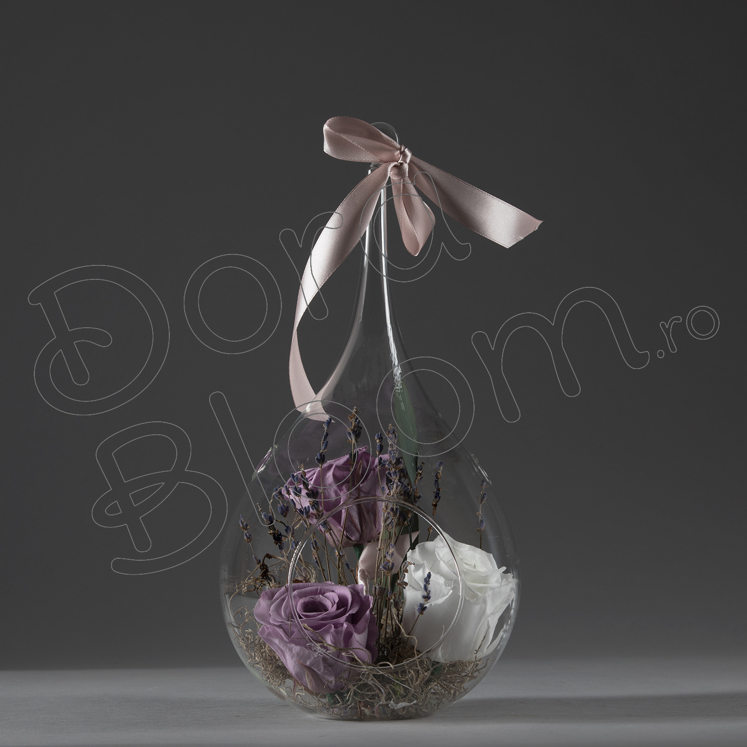 Pentru orice ocazie alege un aranjament floral cu trandafiri criogenati marca Dora Bloom. asezat intr-un suport elegant din sticla ce poate fi asezat cu usurinta in orice locatie, pentru a fi admirat si iubit. Este un cadou corporate deosebit, o surpriza inedita pentru cei dragi, este un dar lesne de oferit, pentru ca se pastreaza intact in timp multi ani! La cerere, aranjamentul se poate crea cu trandafiri criogenati de alte culori sau cu alte accesorii.